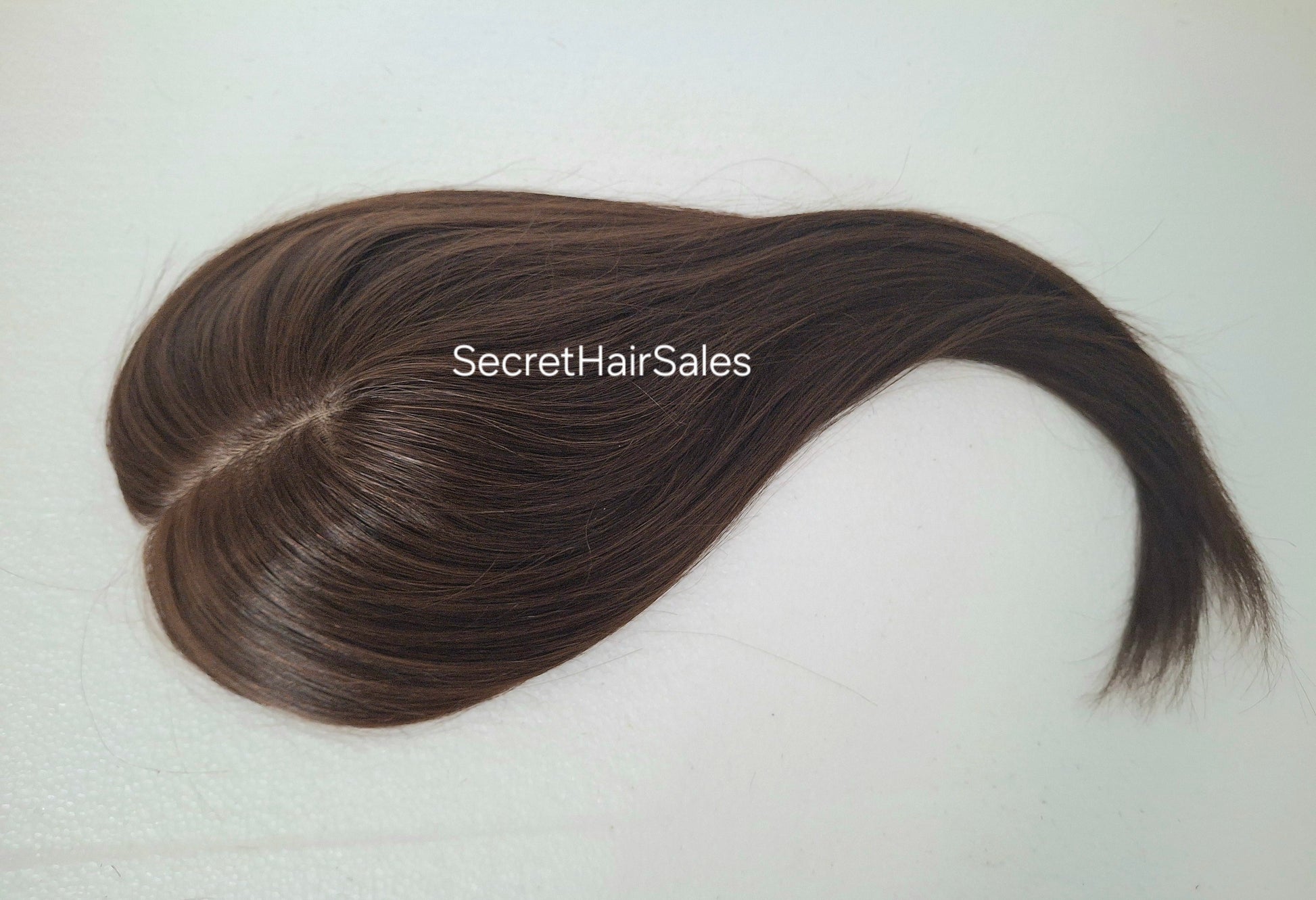 The Bella topper is mid weight (around 100g) and has a breathable silk base. Particularly helpful if you're prone to hot flashes, the hand tied silk allows your scalp to breathe and air to flow through the base.