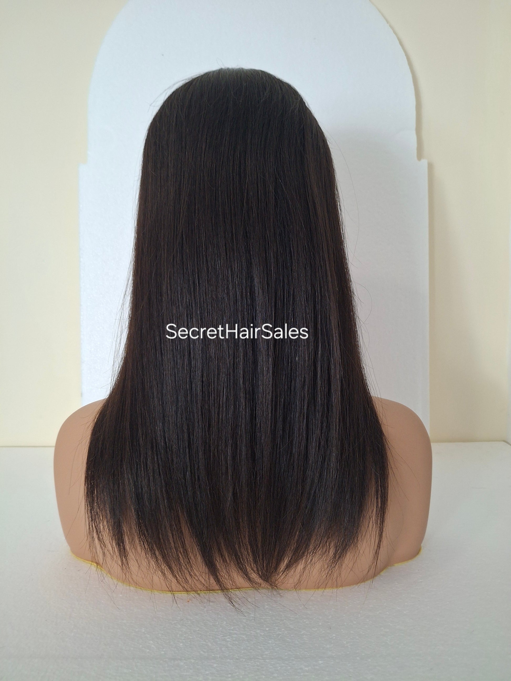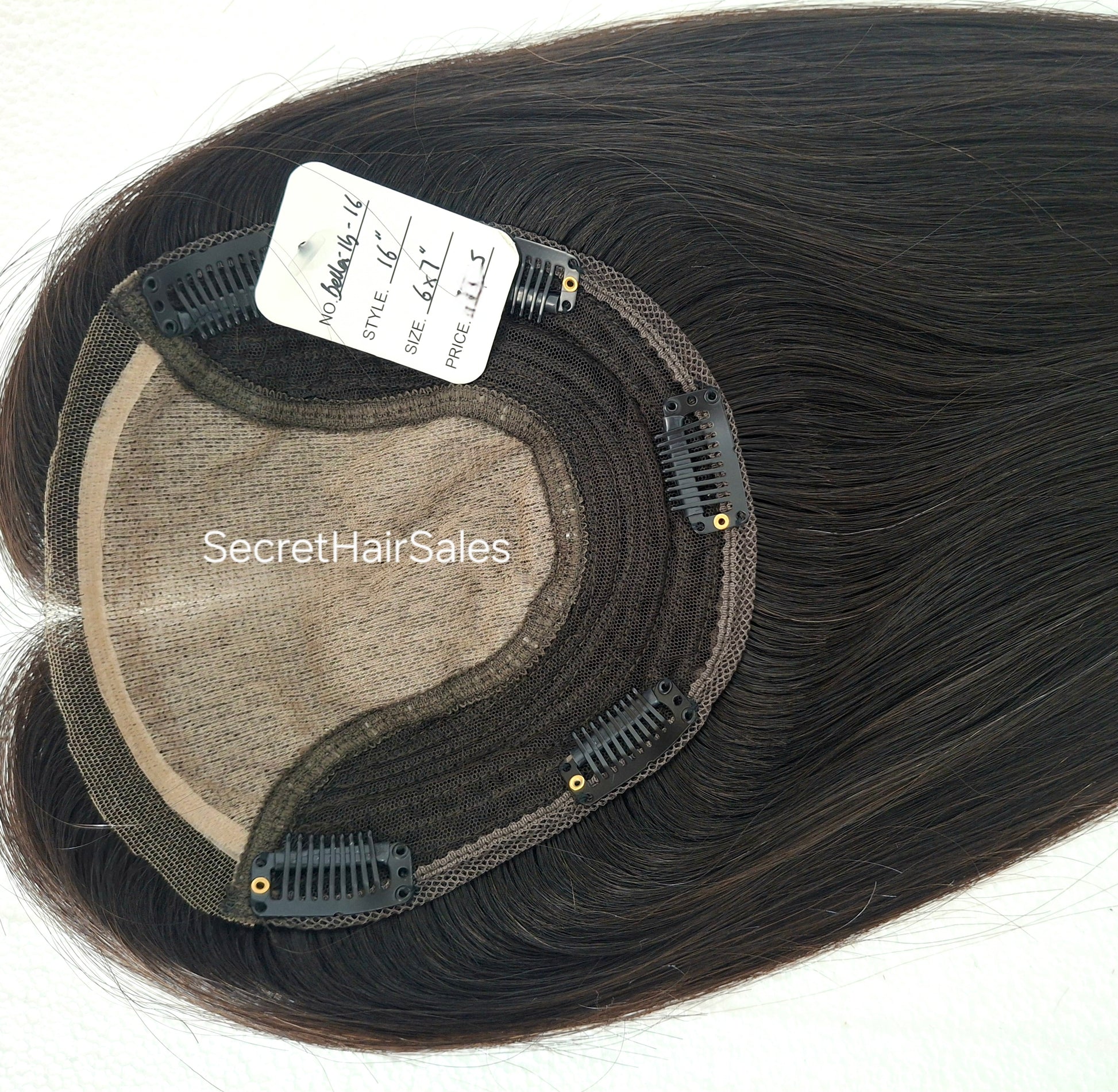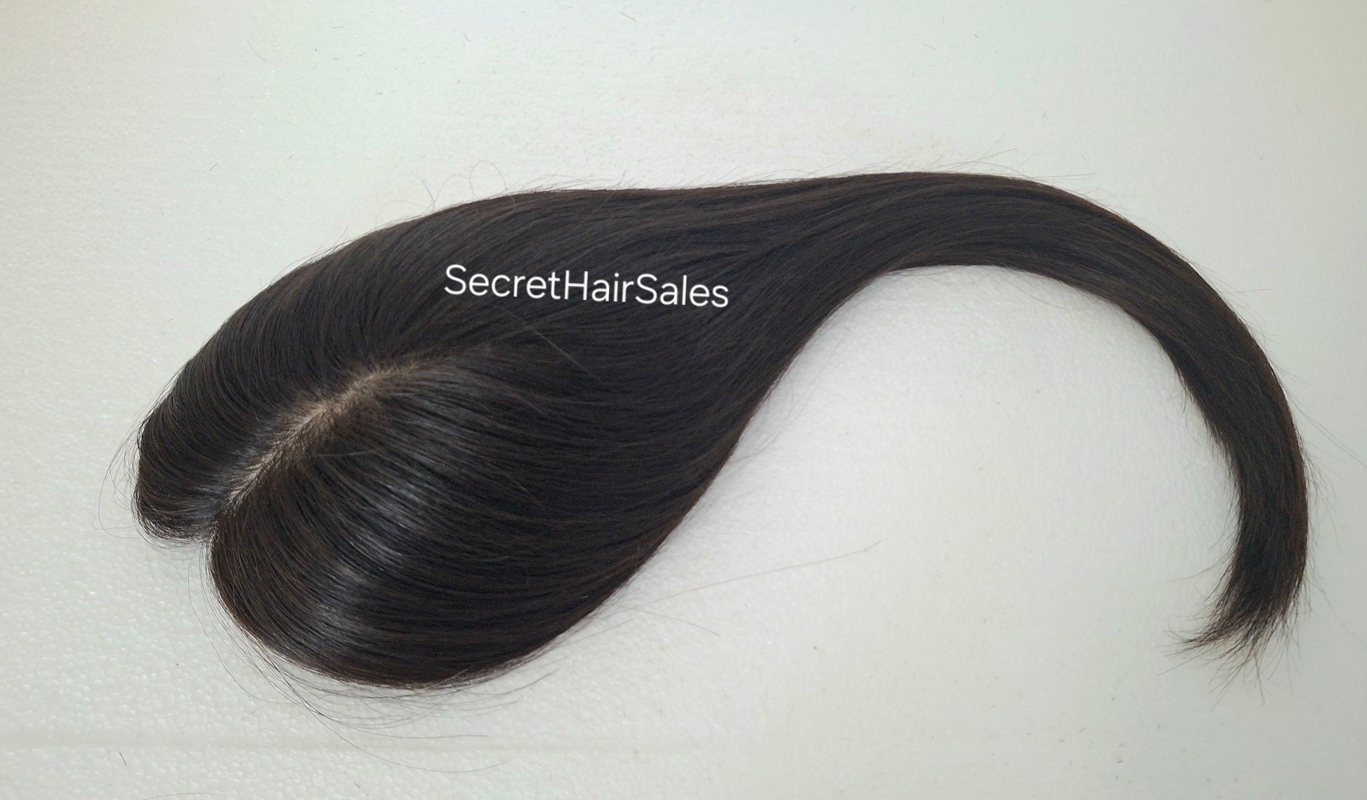 Bella lace front silk and weft base topper, 100% human hair, 6x7inch base, 16inches long, soft black