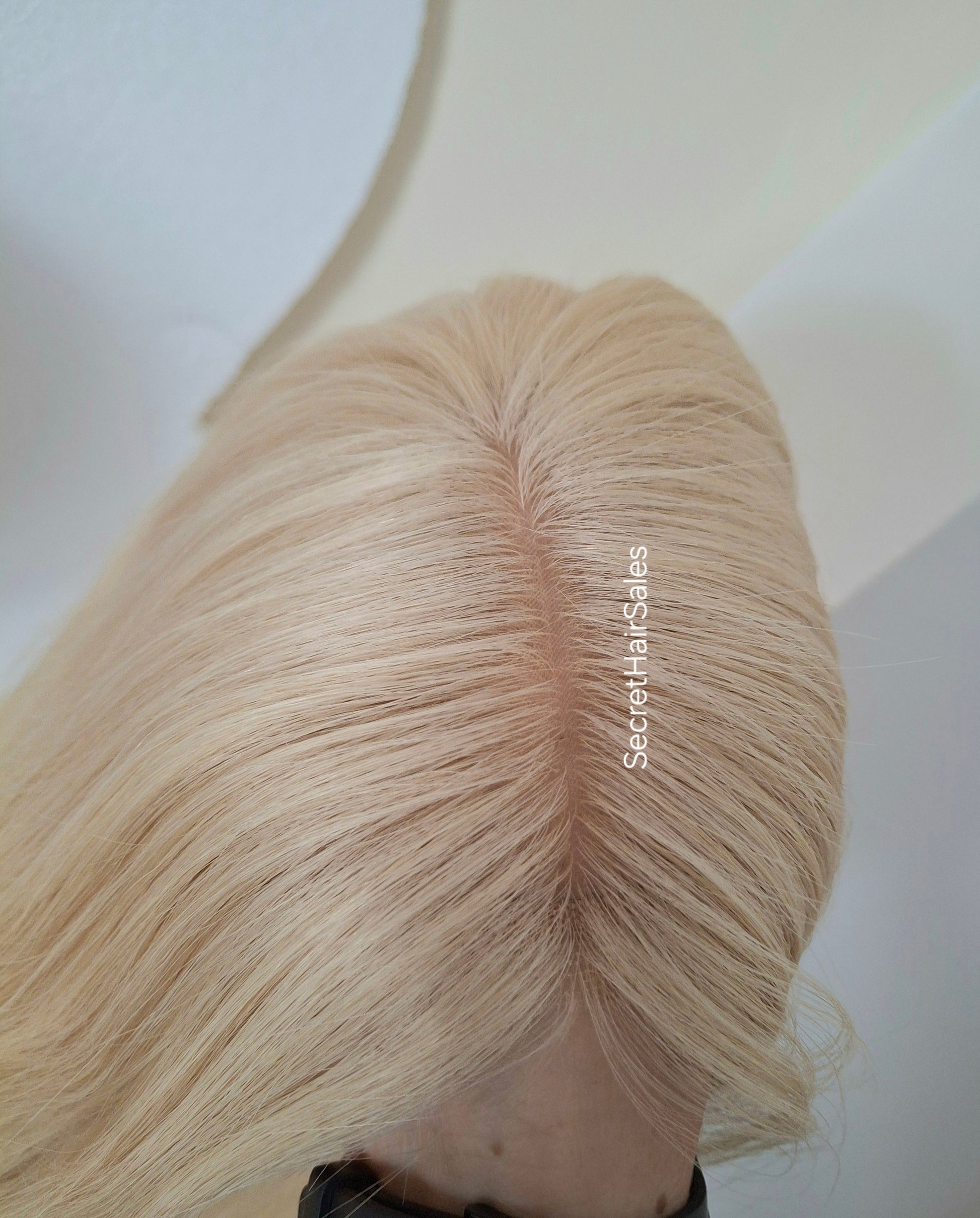 The Bella topper is mid weight (around 100g) and has a breathable silk base. Particularly helpful if you're prone to hot flashes, the hand tied silk allows your scalp to breathe and air to flow through the base.