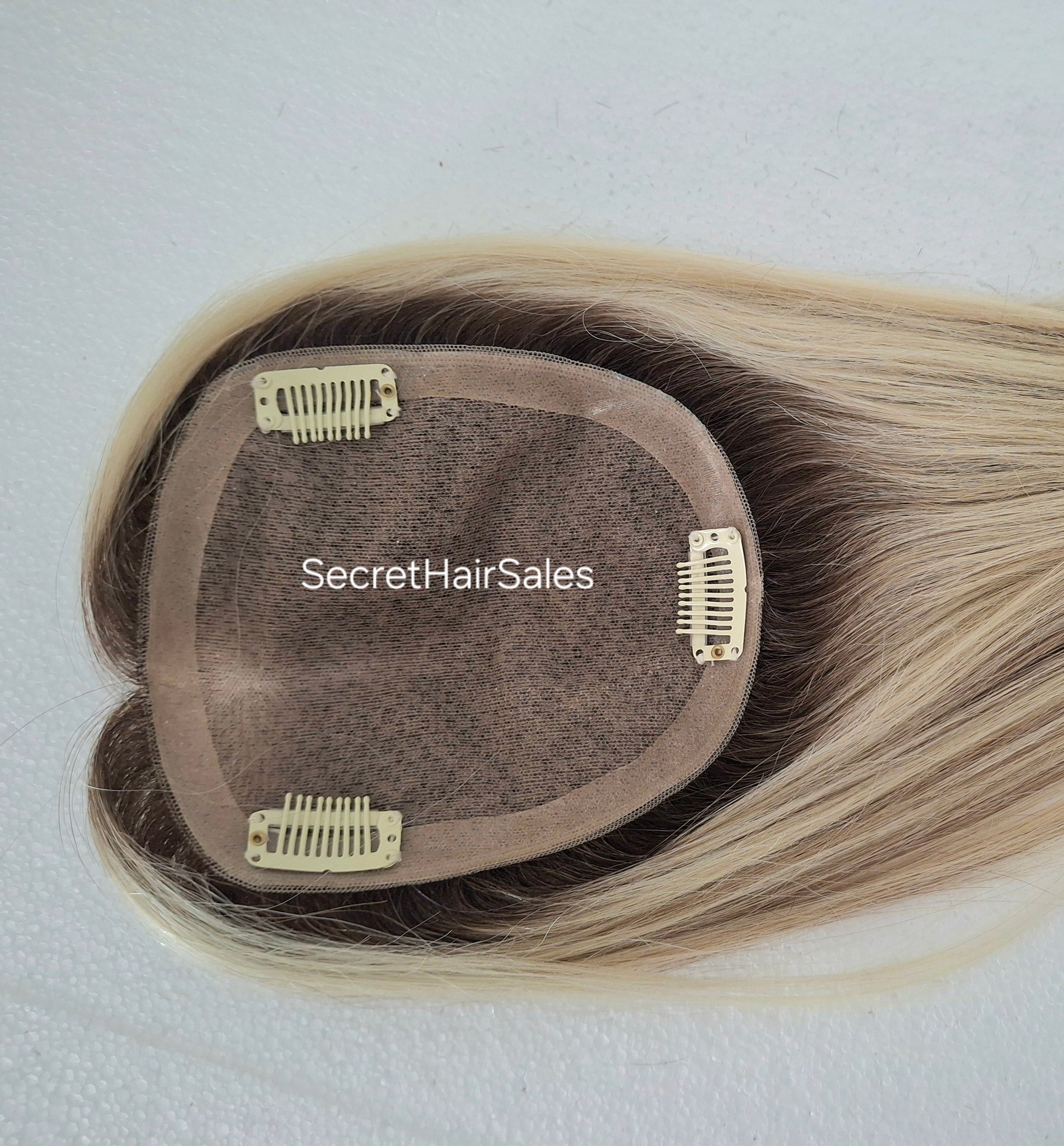 The small base design allows for hair up styles! No more worrying about how to style your hair, the Mila topper has many options.